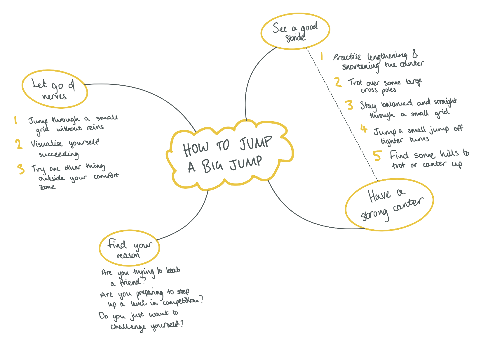 Ask yourself – what are the steps that will get me to where I need to go? For instance, if your goal is to jump your biggest jump, your steps might look like: